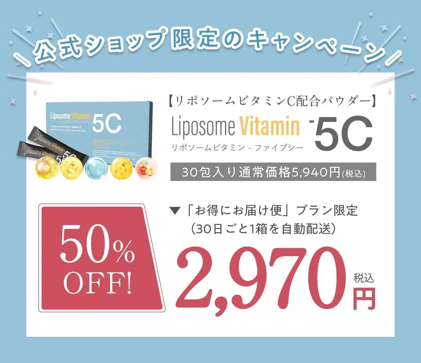 今なら、公式限定50%OFFの2,970円(税込)になっています。