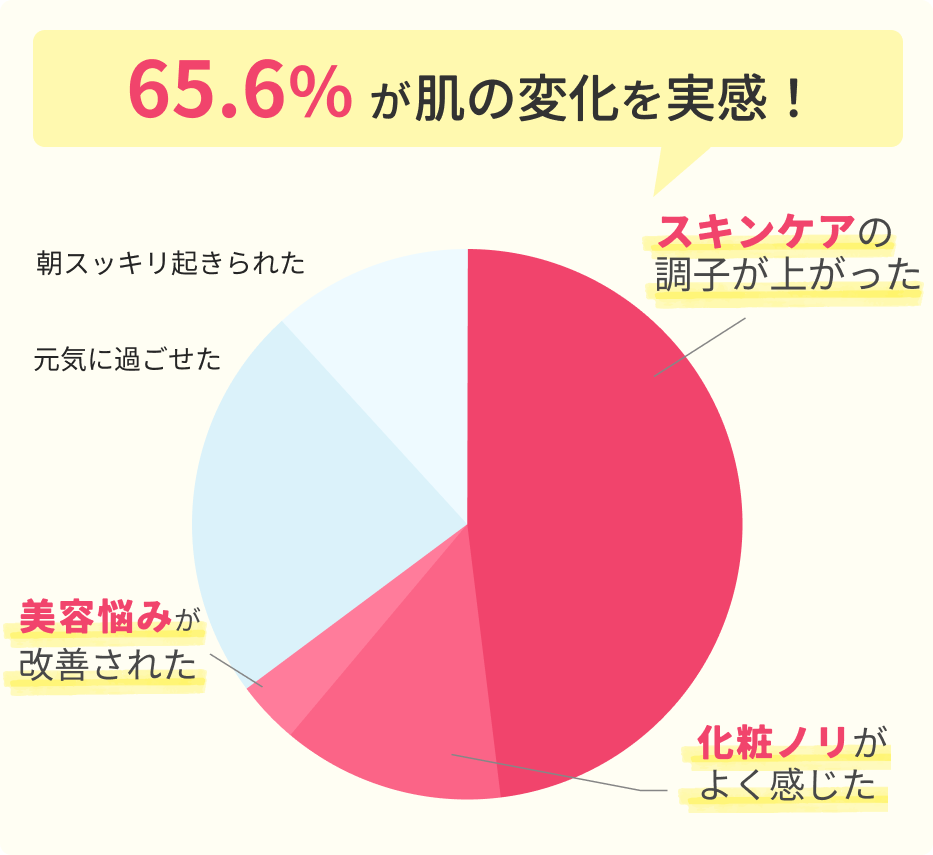 アンケートでは、65.6%が「肌悩みが改善傾向にある」と実感、さらに95.2%が「今後も続けたい」と回答するなど、継続意欲の高さが際立つ結果となりました。